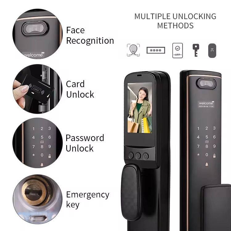 The Tuya Smart Video Doorlock delivers full‑featured security at your door: 1080P HD video, infrared night vision, two‑way audio, and Zigbee 3.0 connectivity. Waterproof (IP65), supports live feed via Tuya/Smart Life app, and voice assistant integration. Also acts as a digital intercom with local storage.