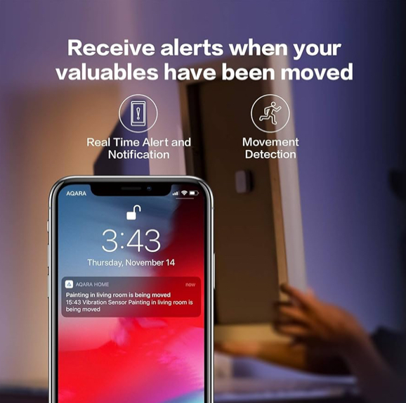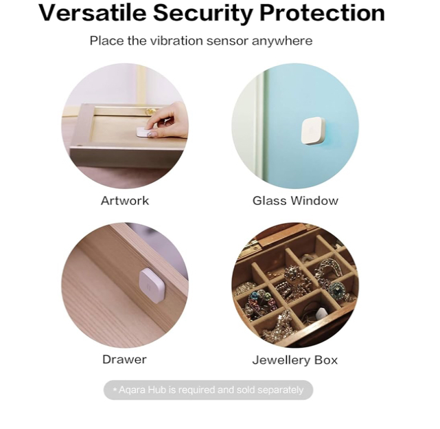 - [Versatile Movement Detector] More than just vibration sensing, this smart vibration sensor also detects tilt and drop movements. Simply attach it to drawers, class windows, jewelry drawers, delivery boxes, safes, or artwork, and get notified if any movement is detected. A perfect solution to safeguard valuables and monitor fragile or sensitive items. For a stable connection, ensure the motion sensor is placed within 393 inches (10 meters) of the Aqara Zigbee Hub.